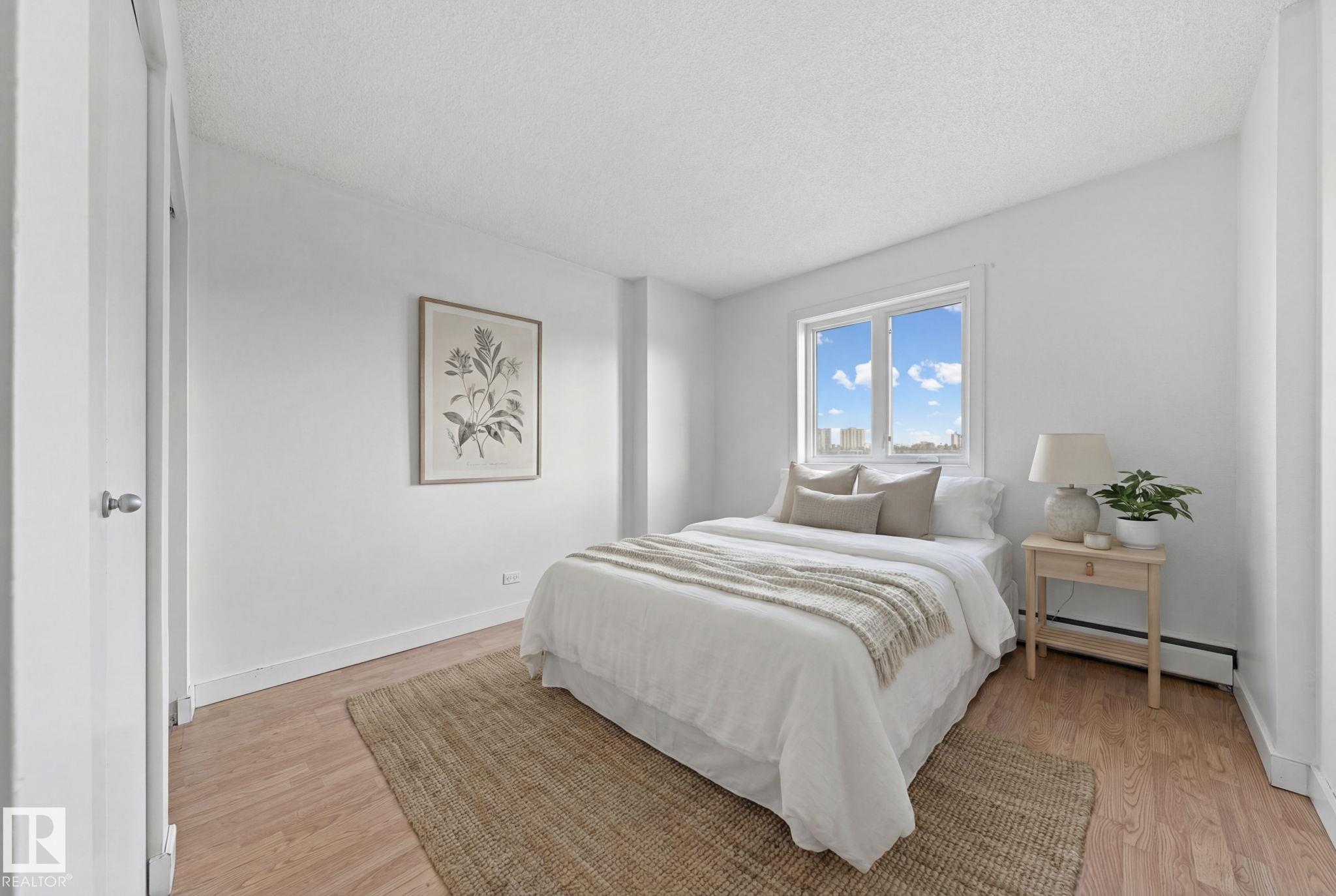 Adorable and affordable! Come and enjoy this 8th floor CORNER UNIT near everything you love. Steps from the river valley, this 1 bed 1 bath unit has easy access to the University of Alberta, MacEwan University, LRT, ICE District, city center, shopping, restaurants, festivals and the incredible river valley trail system. This corner unit has a great layout and beautiful Edmonton views! River Valley Condominiums features concrete construction, two elevators, a flexible parking system, same floor laundry and garbage disposal and updated windows and heating system. Very low condo fees include heat, unlimited electricity, water, sewer, insurance, property manager and a healthy reserve fund. A wonderful opportunity for first time buyers and investors alike!