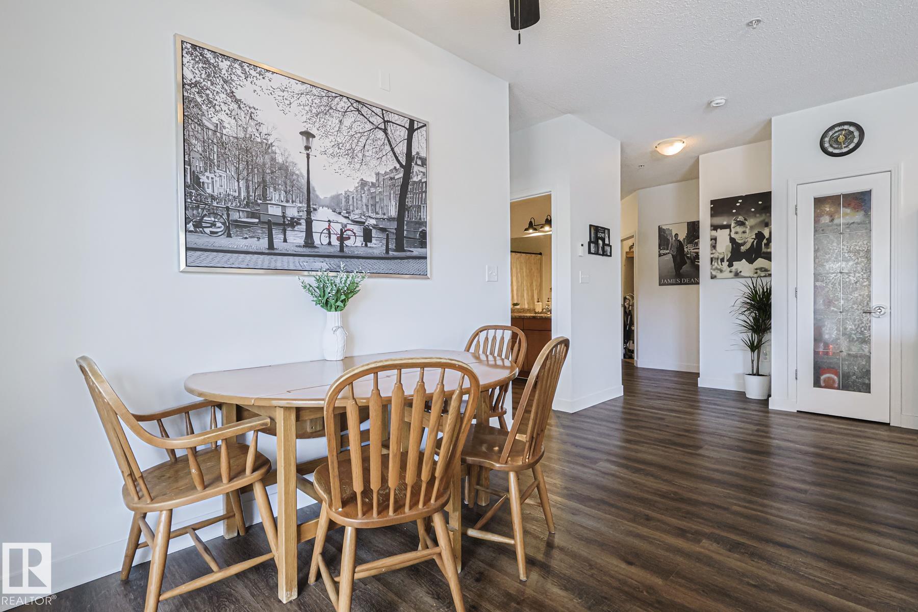 Welcome to this stunning corner unit with 9' ceilings which offers the perfect blend of style, comfort, and convenience. The open-concept kitchen features stainless steel appliances, granite countertops and a functional island with seating - making it ideal for both everyday living and entertaining. Rich wood cabinetry and a convenient pantry provide ample storage. The spacious primary bedroom includes a walk-in closet and private ensuite. The second bedroom is big enough to fit in king size bed and second full bathroom is across the living space --perfect for guests, or a home office. Relax in the inviting living room with a beautiful corner fireplace, adding warmth and charm to the space. The unit offers private balcony, in-suite front load washer and dryer, one secured heated underground parking stall. The building offers social room, gym and a guest suite. Minutes to park, lake, shopping, school and transportation and a perfect place to call home