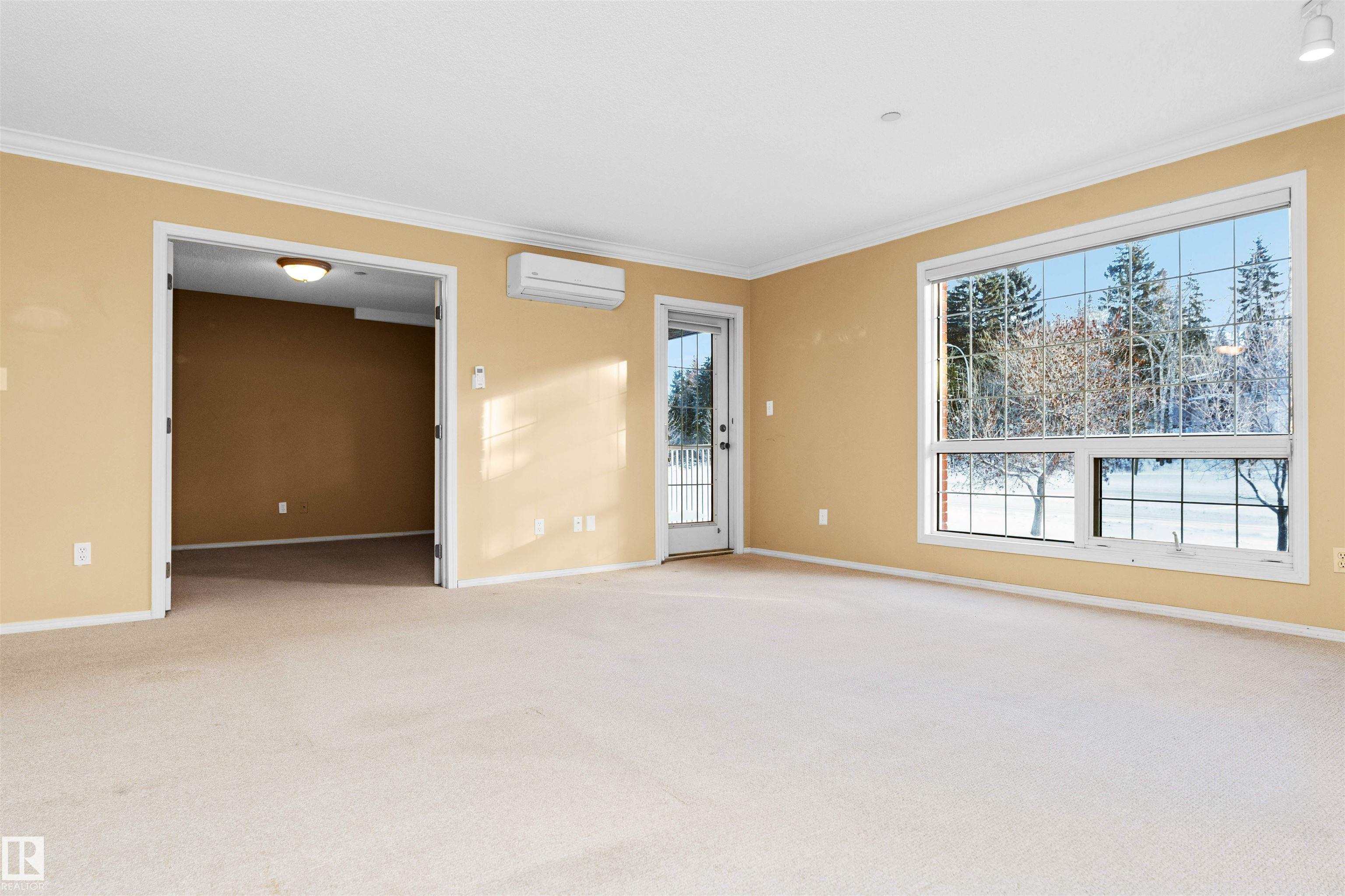 Discover this charming 45+ age-restricted condo located in the heart of downtown St. Albert. This south-facing unit offers a bright living space with 1,200 sqft of open-concept living. The spacious living room features a cozy gas fireplace, perfect for relaxing evenings. The primary bedroom includes a 4-piece ensuite. A versatile office with French Doors offers flexible options--use it as a 2nd bedroom, home office or formal dining area to suit your lifestyle. The unit also boasts a full 3-piece guest bathroom and a laundry room w/ sink and storage. Additional highlights include another office/storage room to accommodate your needs, an underground parking stall w/storage cage and access to an amenities room on the main level. The building fosters a welcoming community atmosphere. Situated close to all amenities, enjoy scenic walking trails along the St. Albert River and the renowned St. Albert Farmer's Market. Please note, this building is pet-free and smoke-free, ensuring a clean and peaceful environment.